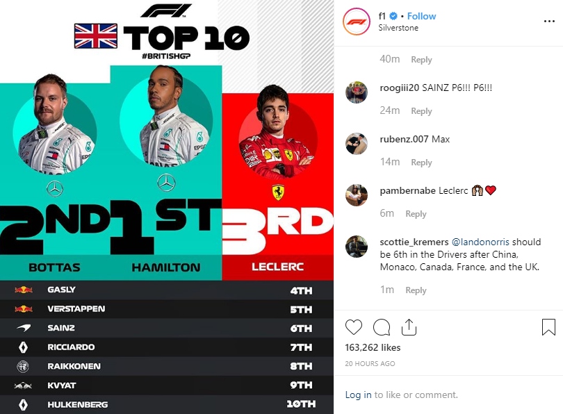 Charles Leclerc and Pierre Gasly took advantage of Sebastian Vettel’s robust crash with Max Verstappen to climb to third and fourth places respectively. These results leave Hamilton in an untouchable championship position with 223 points while Bottas guards his second spot with 184 points.